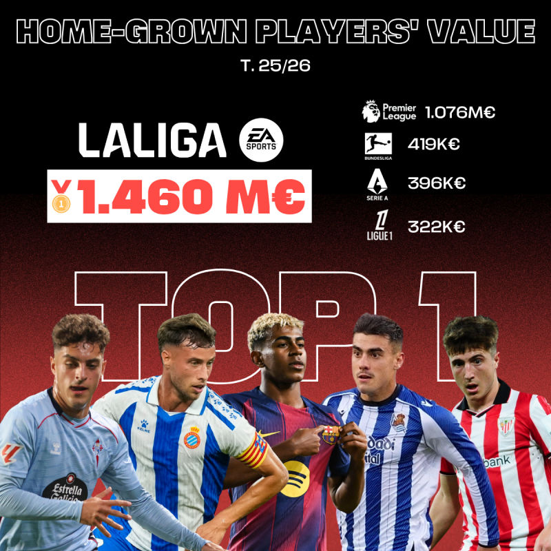 西甲本土培养球员转会身价总和居欧洲首位:达14.6亿欧元